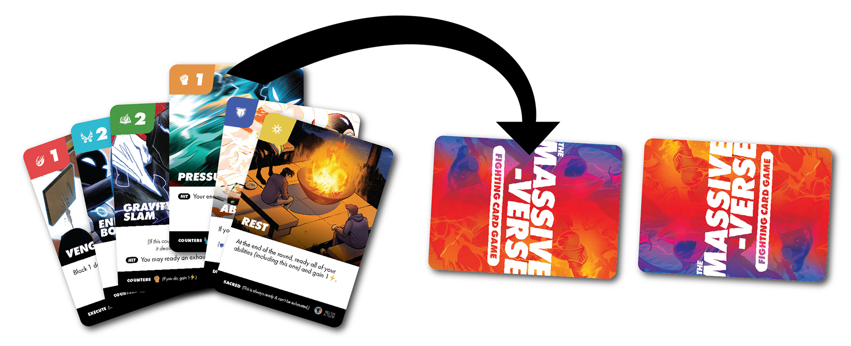 The Massive-Verse Fighting Card Game is a tense, two player dueling game that plays in 10 minutes. This starter pack contains everything two people need to play.